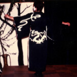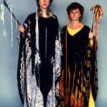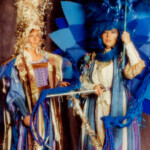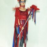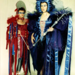 April 19: “Jabberwocky” — ConFrancisco (1993, Worldcon 51). Inspired by Indonesian shadow puppets, Ernst Haeckel’s “Art Forms in Nature,” and the Lewis Carroll poem, and including just about every fabric technique you can think imagine. As was our wont, we built hall costumes to wear underneath the elaborate stage presentation pieces (trust me, you don’t walk into bars wearing eight inch platform boots and a huge headpiece). The music combined Robin Williamson and Balinese chant.