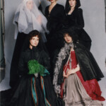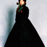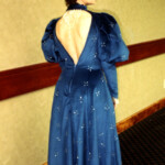 April 20: For “Widows of the Silver Screen,” Jwlhyfer, Jana, Autumn, Sheri and I each chose a mourning ensemble from a film, spanning five centuries of historical interpretations, adding a token accessory to help express our characters. My entry was Scarlett O’Hara’s ball gown, worn when she was (supposedly) mourning her first husband. She also carries the stylish hat Rhett brought her from Paris. [Fun fact: I worked with a very young Lee Presson to put together the music for our presentation, which combined themes from each of the five films.]