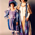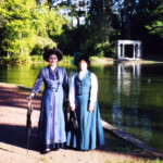 April 14: In retrospect, 1992 was a banner year for costuming, including the very first Costume College put on by Costumer’s Guild West in Southern California (it’s still going strong!). I made these Folkwear Beach Pajamas for the evening gala. Kelly taught me how to swing dance while we were designing our Robin Hood group costumes.