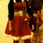 April 24: During the ‘90s, I went to a LOT of costumer parties in the Bay Area, some with amusing, trendy, or downright wacky motifs (Famous Dead Persons, Hitchhiker Guide-themed 42nd birthday, Sharkcon…). I liked whipping up mix-n-match personas, such as Will Scarlett O’Hara or this one, Red Sonja Henie. [Fun fact: I bought those ice skates with a gift certificate I got when I was chosen as Miss Junior Baseball in 1961.]