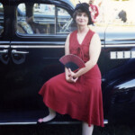 April 23: This is my favorite ensemble from one of many Art Deco Society of California (ADSC) Gatsby Picnics at Dunsmuir House in Oakland. I’m wearing a vintage dress but I accessorized by decorating the hat and shoes. Sadly, the automobile is not mine.