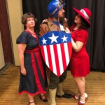 April 27: I finally returned to Costume College in 2019, and was part of a Peggy Carter cosplay group for the Friday Night Showcase event. “Cap with Two Peggys” with Frank and Bianca, and our full group on stage.